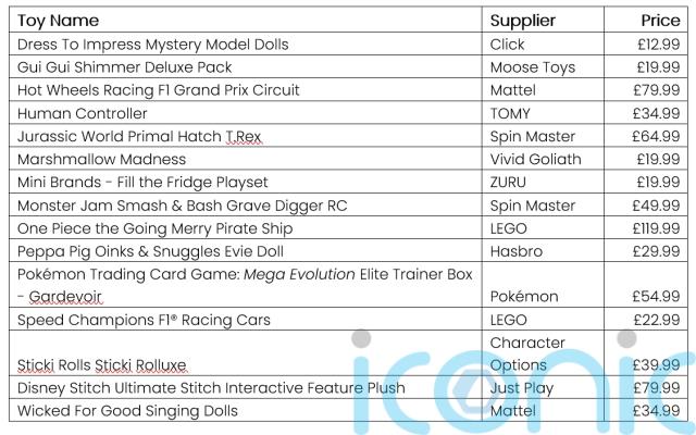 The list is released as industry data tracking experts Circana revealed the UK toy market grew by 6% in value this year, the largest increase since 2020.