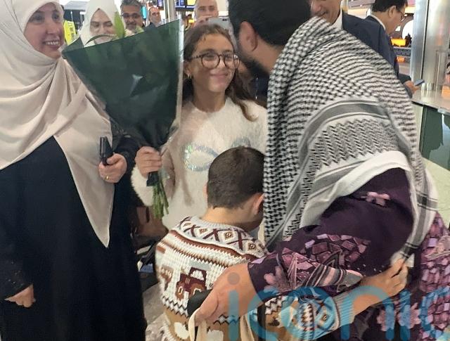 Footage showed him being greeted by loved ones at arrivals with hugs, kisses and flowers.