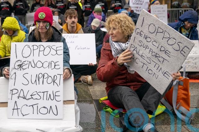 Dozens of people with placards saying, “I oppose genocide, I support Palestine Action” and “Paint is not terrorism” gathered outside the city’s Central Library as activists took part in silent protests.
