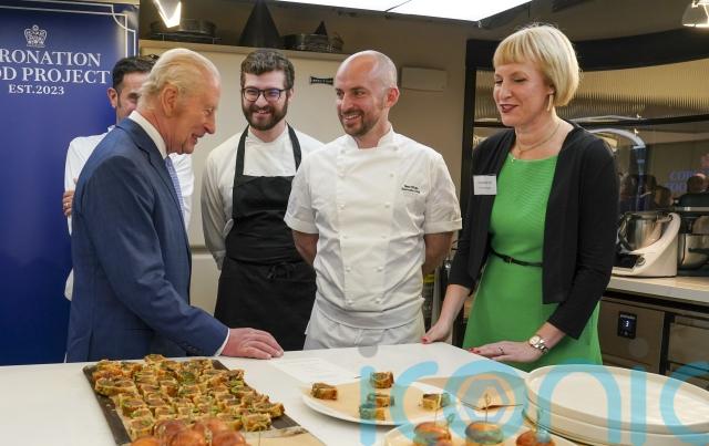 During the visit, the King met a group of apprentice chefs being trained by the Felix Project who had prepared canapes from surplus food that included venison sausage rolls and custard tartlets.