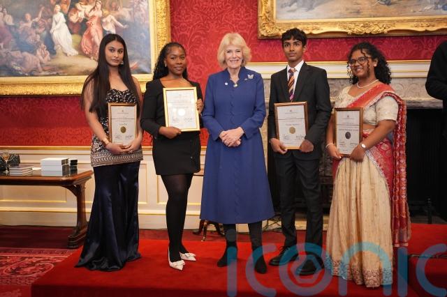 Camilla hosted the Queen’s Commonwealth essay competition presentation ceremony at St James’s Palace, where singer-songwriter Joan Armatrading, former Spice Girl Geri Horner and acclaimed children’s author Dame Jacqueline Wilson were among the celebrities reading the winning entries and runner-ups.