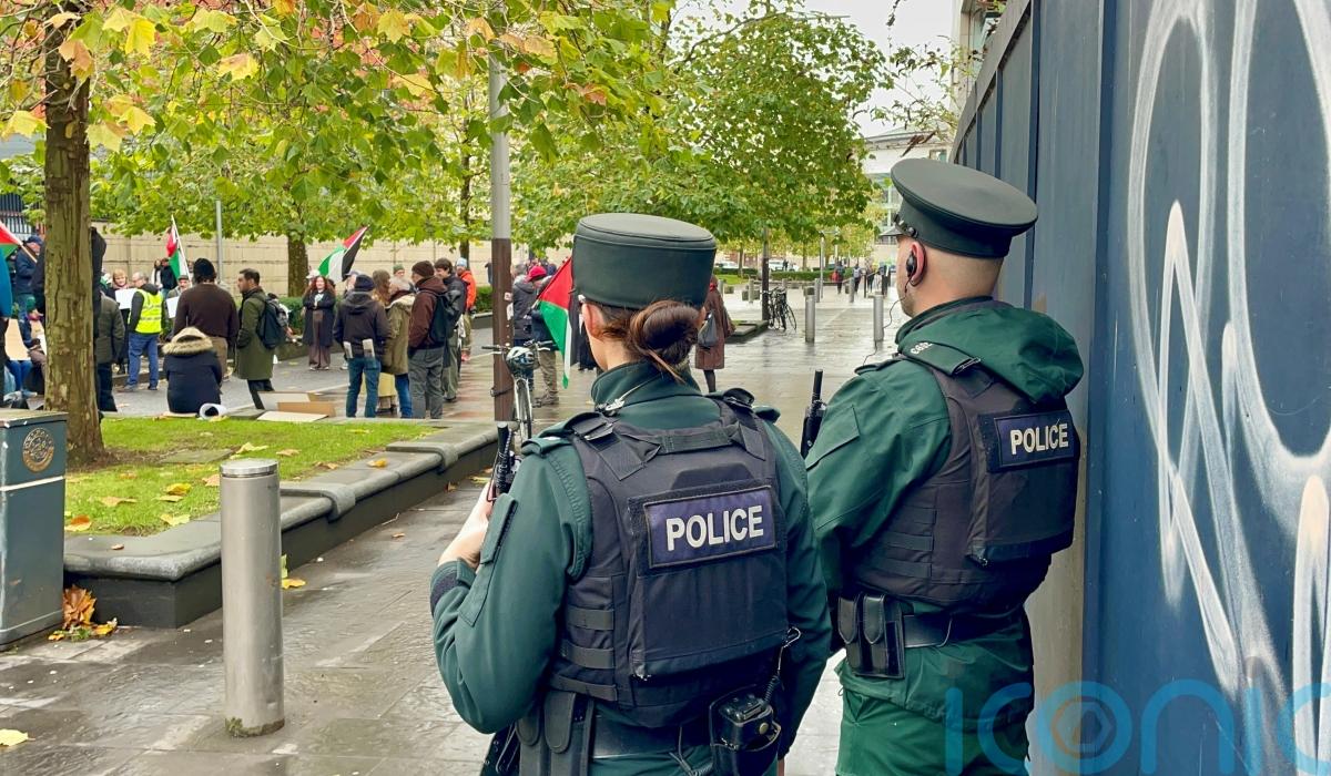 Four Police Service of Northern Ireland (PSNI) officers maintained a low-key presence as they observed the hour-long demonstration from a short distance away. The officers did not intervene during the event and the crowd dispersed shortly after 2pm.