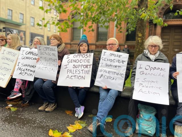 In Belfast, a crowd of about 60-80 activists and supporters gathered on a pedestrianised area close to the city’s main court buildings at 1pm, with between 15-20 of them holding placards carrying the statement: “I oppose genocide, I support Palestine Action.”