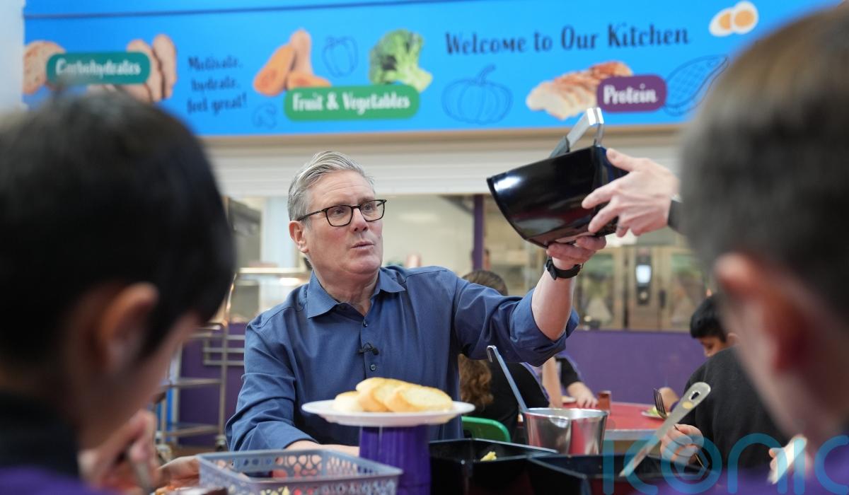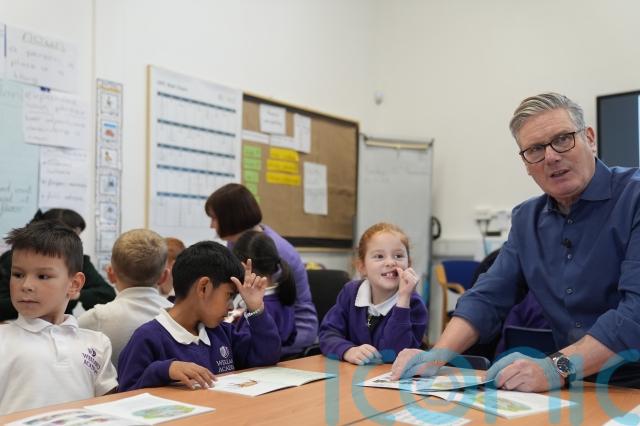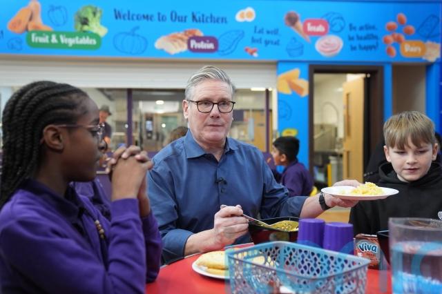 Sir Keir Starmer joined children who were reading books of animal poetry in a classroom at Welland Academy in Peterborough before going through to the dining hall and speaking to kitchen staff.