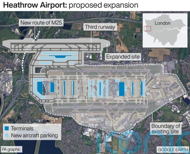 The Heathrow proposals involve building a 3,500-metre runway and require a new M25 tunnel and bridges to be built 130 metres west of the existing motorway.