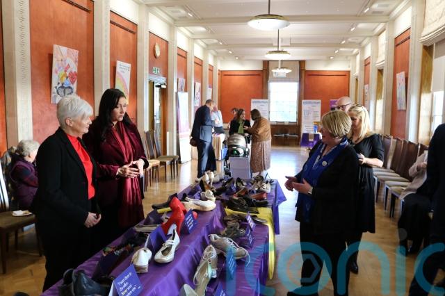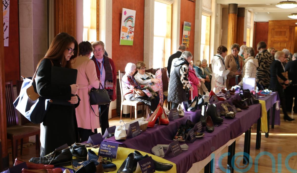 The Souls of Our Shoes exhibition, organised by the Mothers’ Union, featured the shoes of more than 50 domestic abuse survivors on display at Northern Ireland’s seat of government on Tuesday.