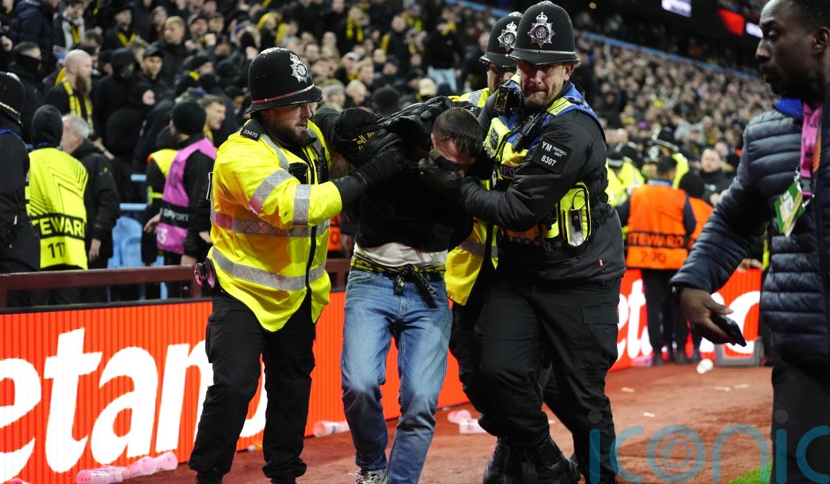West Midlands Police said a number of officers were assaulted by supporters of the Swiss club, with items including broken seats and coins aimed at police and Villa players, and Dutch forward Donyell Malen struck on the head.