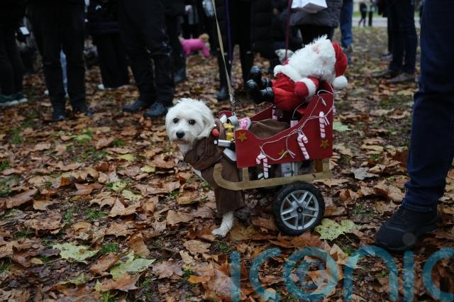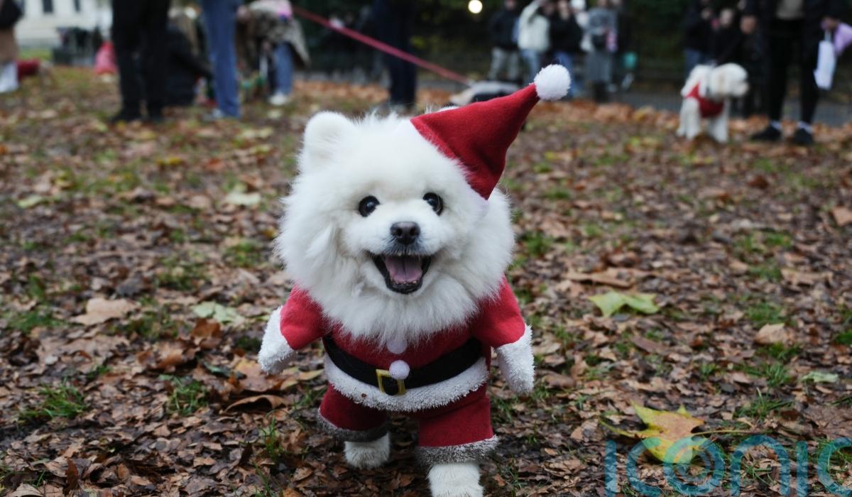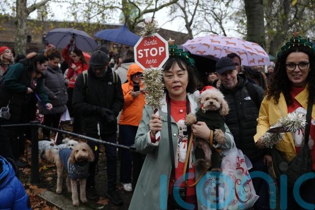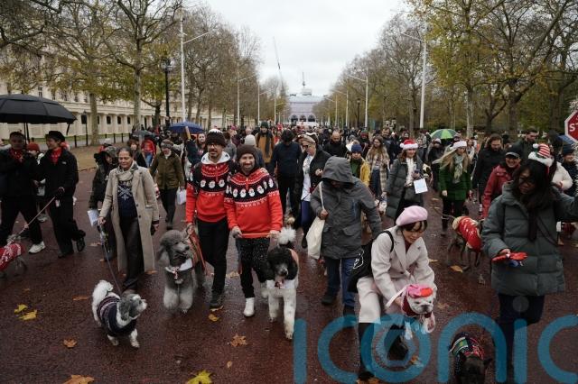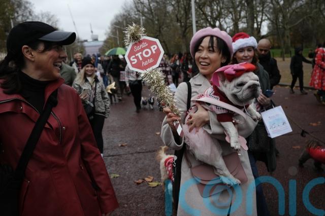 More than 100 dogs dressed in Christmas jumpers for a special walkies to Buckingham Palace to show that once again Santa paws was coming to town.