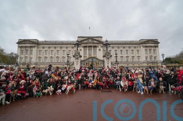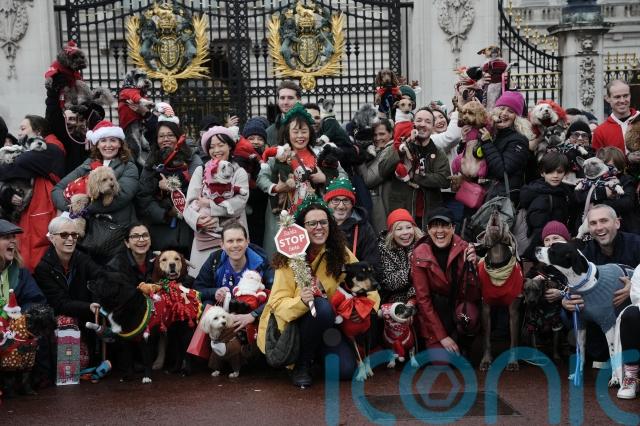 The Rescue Dogs of London Christmas jumper parade walk included a best Christmas jumper competition and a group photo in front of Buckingham Palace.