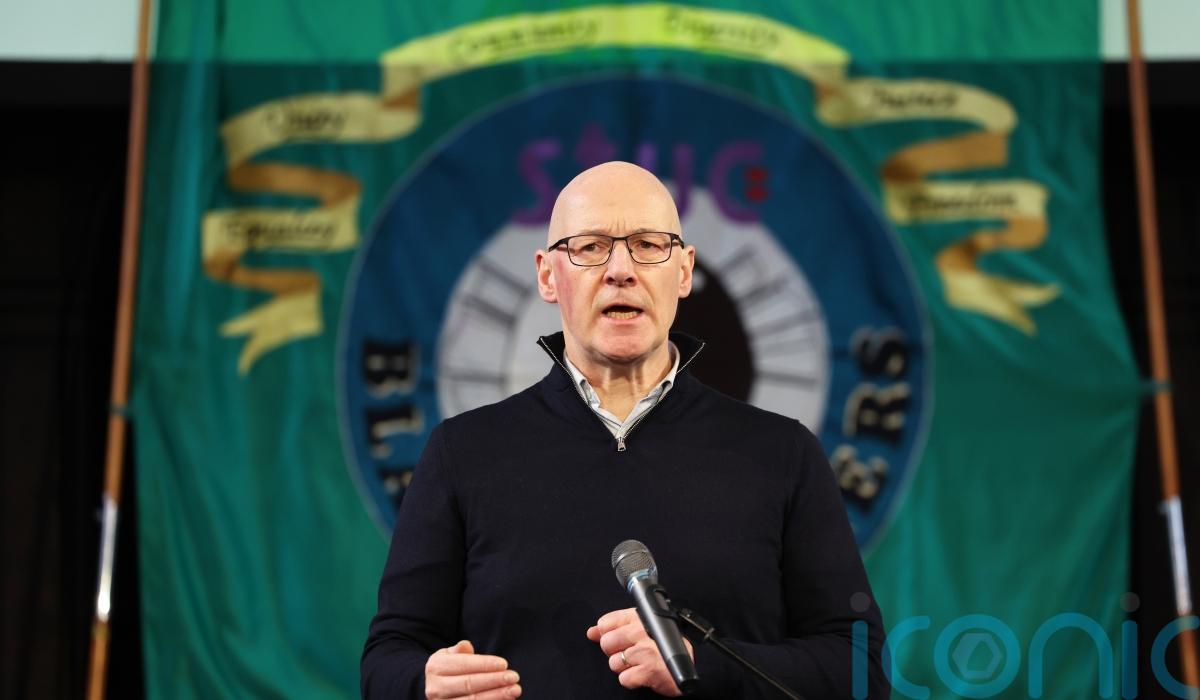 John Swinney marched through Glasgow with the Scottish Trade Union Congress (STUC) alongside other political leaders on Saturday before speaking at a rally decrying racism and the far-right.