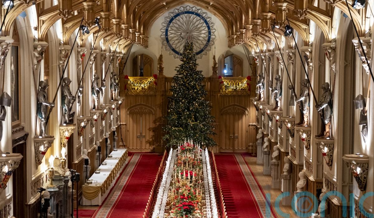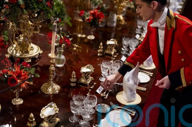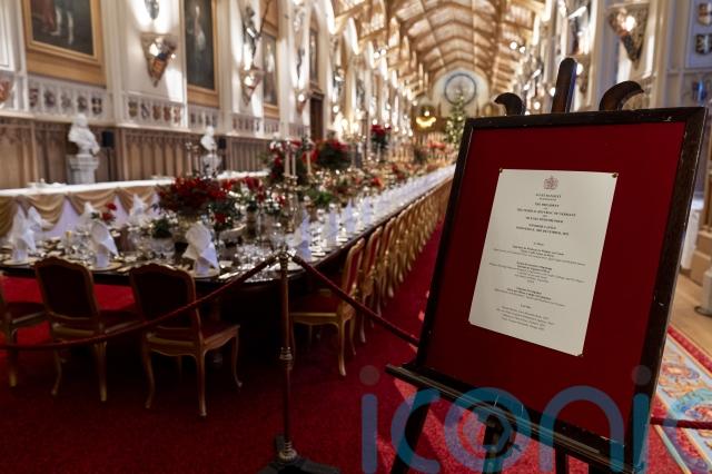 A Christmassy state banquet is being staged for the first time in modern royal history with a magnificent 20ft Christmas tree adorning Windsor Castle’s St George’s Hall.