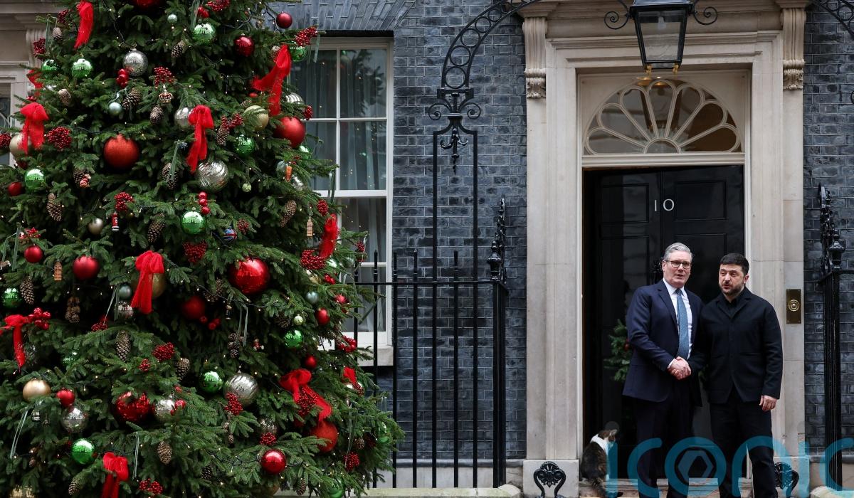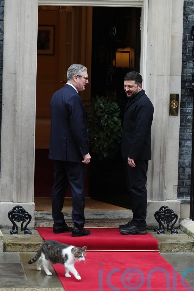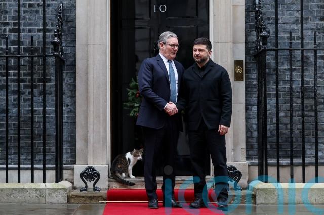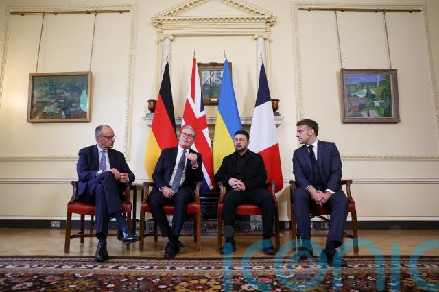 Prime Minister Sir Keir Starmer is hosting Mr Zelensky along with French President Emmanuel Macron and German Chancellor Friedrich Merz for private talks as efforts continue to find a way to end the war with Russia.