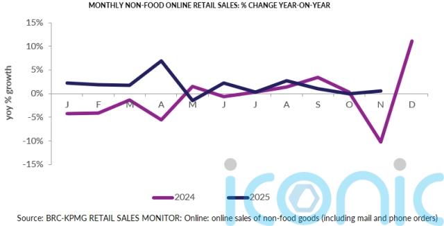 Online non-food sales increased by 0.5% against a decline of 10.3% last November, and below the average across the year of 2.5%.