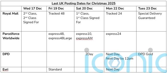 The Post Office has released its last dates for Christmas posting to help people ensure their gifts arrive in time for the big day.