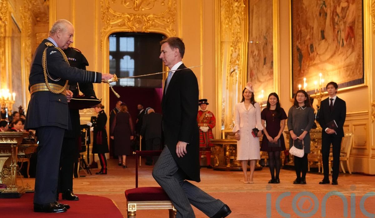 He said he felt “a bit overwhelmed and very humbled” to receive the honour at Windsor Castle, adding: “It’s a lovely moment. Politics is a lot of rough and tumble but I feel incredibly honoured to be recognised in this way, so it’s a happy day.