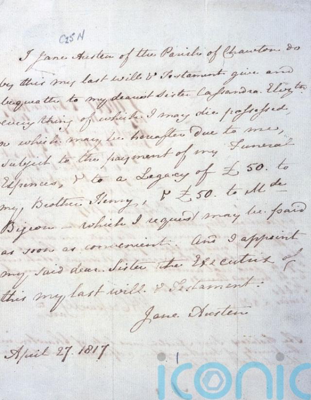 The author, famed for works such as Pride And Prejudice and Emma, died at the age of 41 in 1817 and left “everything of which I may die possessed” – except for two other bequests – to her “dearest sister” Cassandra.