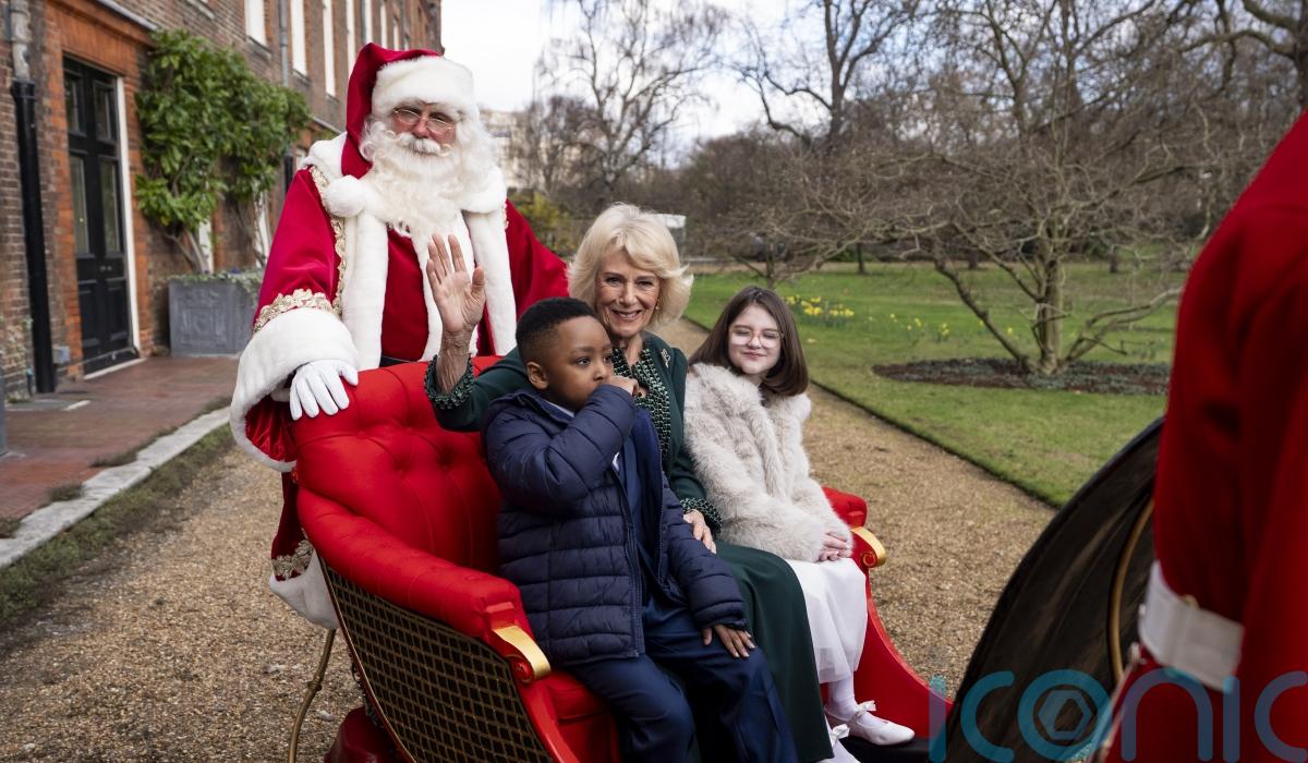 Camilla joined youngsters with life-shortening conditions in Queen Victoria’s former sled after she hosted her traditional Christmas lunch for the group at her London home Clarence House.