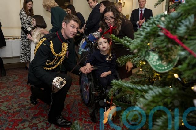 One of the highlights of the event was the decorating of the Christmas tree with the Queen’s outgoing equerry Major Ollie Plunket joined by his successor Major Rob Treasure who both used their swords to delicately place ornaments, picked out by the children, on the tree’s topmost branches.
