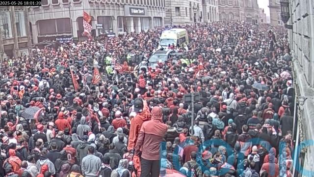 Footage from Dale Street showed his Ford Galaxy swerving into crowds of fans to go down Water Street, which was closed off to traffic.