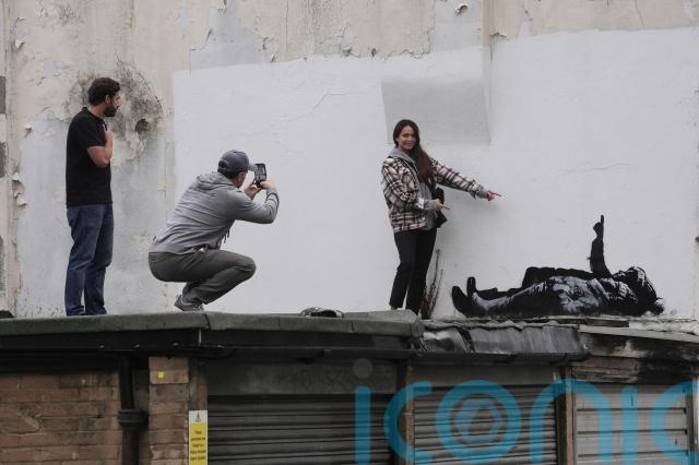 After the artwork appeared people could be seen taking pictures alongside the black and white graffiti piece in Queen’s Mews, Bayswater.