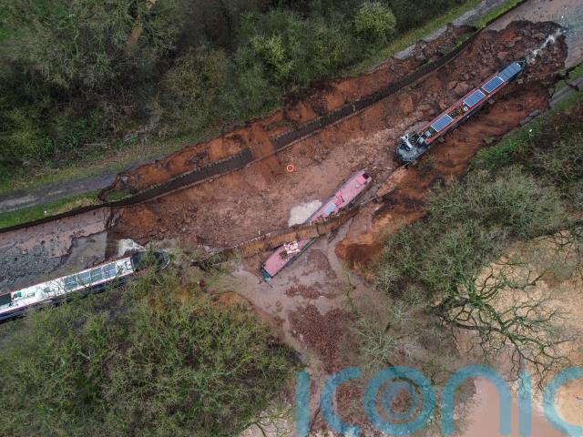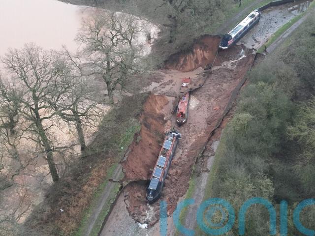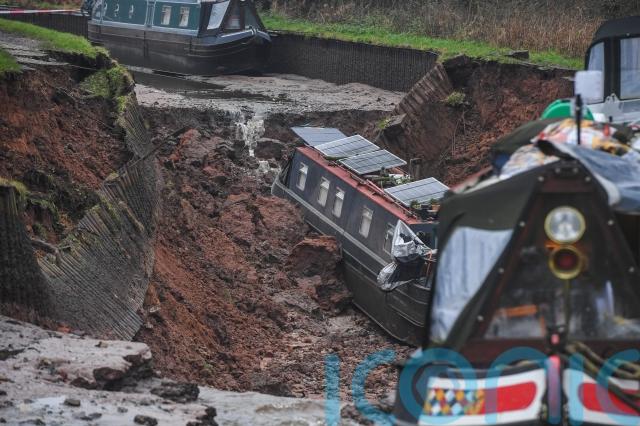 Shropshire Fire and Rescue Service said three boats were caught in a developing ‘sinkhole’ approximately 50 metres by 50 metres in size and that approximately 12 people from nearby moored boats were helped to safety.