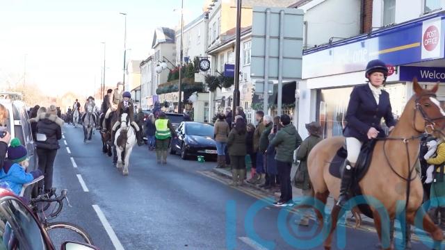 Among the other meetings across the country was the Grove Rufford Hunt, which gathered in the main street in Bawtry, South Yorkshire, before more than 100 riders set out for the nearby village of Scaftworth.