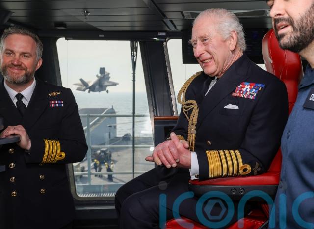 One engagement took the King out to sea, when he dropped in on the crew of the aircraft carrier HMS Prince of Wales in the English Channel, ahead of the ship’s deployment to Japan.