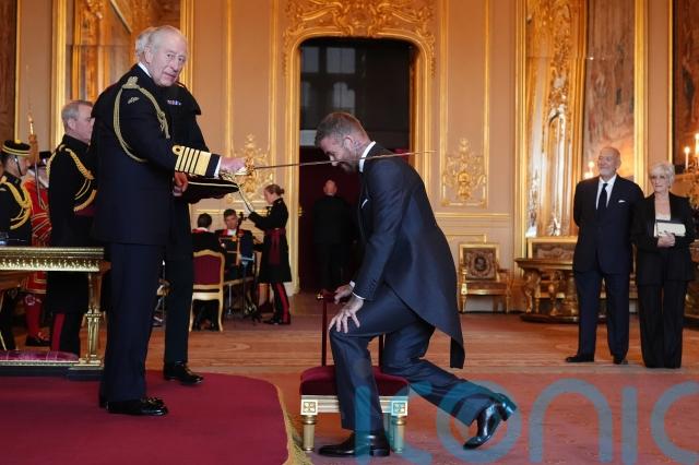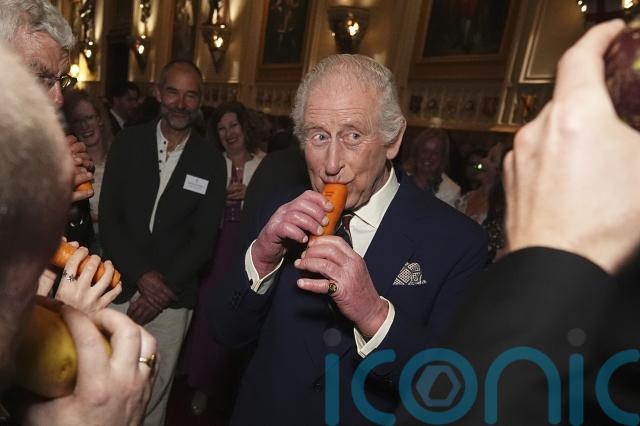 In lighter moments, the King played a carrot with the London Vegetable Orchestra at a reception for community music groups and knighted former England footballer Sir David Beckham.