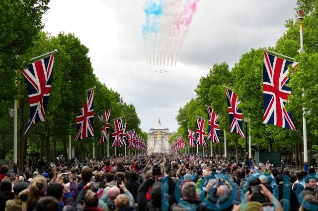 National commemorations including a Palace flypast marked the 80th anniversary of VE Day and the King paid tribute to the sacrifice of the wartime generation at a celebratory concert on Horse Guards Parade.