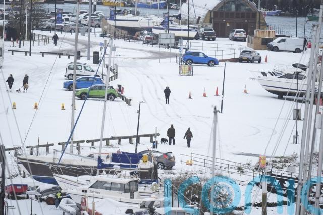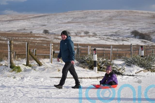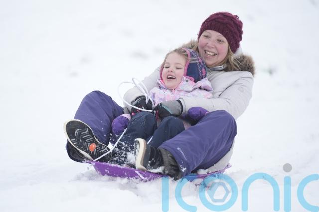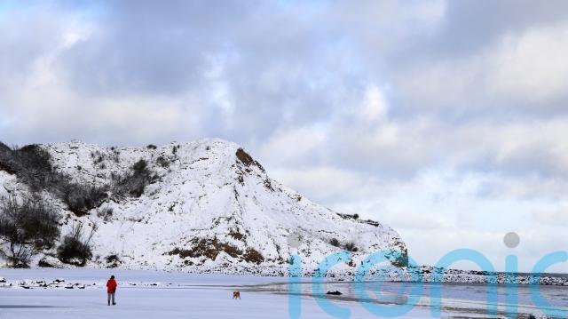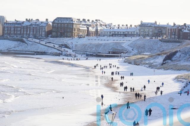 Dog walkers and others took to the white-dusted beaches while it was the perfect moment for parents and children to speed down the slopes on sledges or indulge in the other seasonal pursuit of finishing off a freshly constructed snowperson by adding a carrot for a nose.