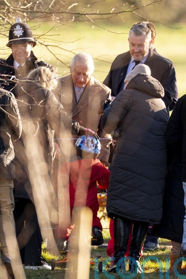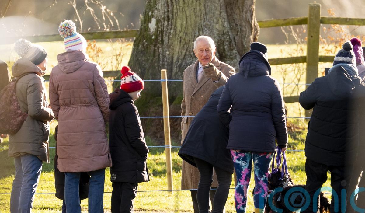 The King chatted to members of the public in the cold as he and the Queen attended a church service at Sandringham.