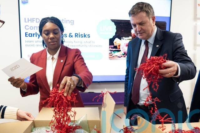 Ms Badenoch was joined by shadow chancellor Mel Stride and shadow housing minister David Simmonds during her visit to marketing compliance agency PromoVeritas on a snowy morning in London.
