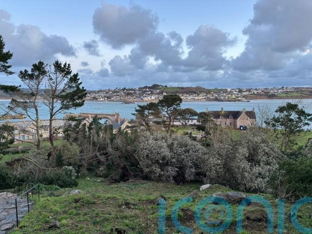 Residents on a tidal island near Cornwall woke to the devastation wreaked by Storm Goretti, which felled more than 80 trees.