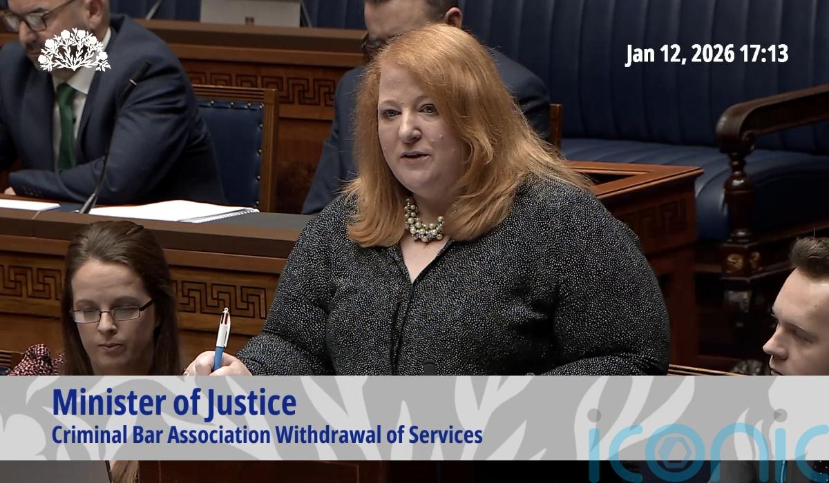 Northern Ireland’s Justice Minister has said she is “perplexed” at what she has termed a decision by the Criminal Bar to “hold victims to ransom” by striking.