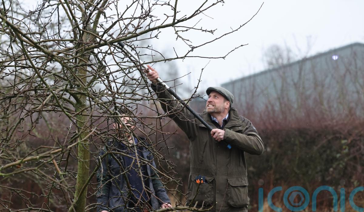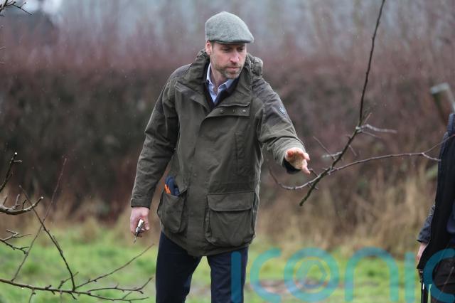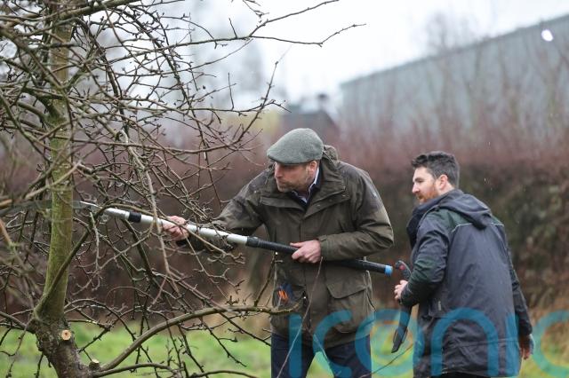 After warming up in the barn with a mug of hot local cider and discussing the issues Mr and Mrs Bowler have faced running their 190-acre family farm, the pair took William to the orchard, where he had a go at pruning and cutting back apple trees.