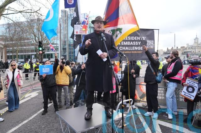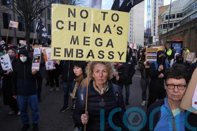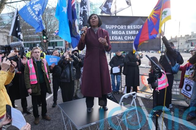 Conservative Party leader Kemi Badenoch called for the Government to stop China’s proposed central London “mega-embassy” when she spoke at a protest on Saturday.