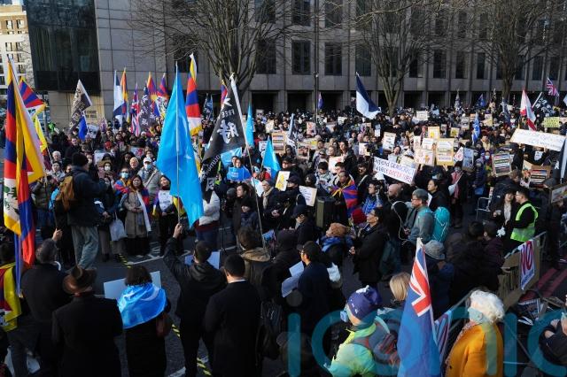 Iain Duncan Smith told protesters: “Those of us that are here today will stand against tyranny. We have a major problem, we have China, North Korea, Russia and Iran in a new axis that threatens the very freedoms that we in the United Kingdom believe, and many of you who have fled here.