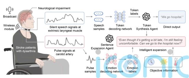 Patients can silently mouth speech, while another part of the AI can interpret emotional state and contextual information, such as the time of day or weather conditions.
