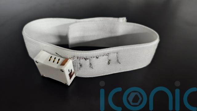 Revoice is worn as a soft and flexible choker around the neck, picking up the patient’s heart rate and tiny vibrations from throat muscles.
