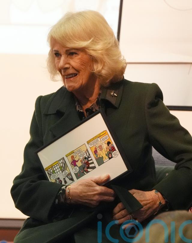 Camilla joined schoolchildren from the local Granton and Clovenstone primary schools who had spent much of their morning creating their own fictional comic book characters to show her upon her arrival.