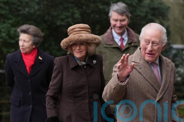 Charles, wearing a brown overcoat and a suit and tie, walked alongside Dame Sarah after her first sermon at St Peter’s Church in Wolferton, on the King’s Norfolk estate.