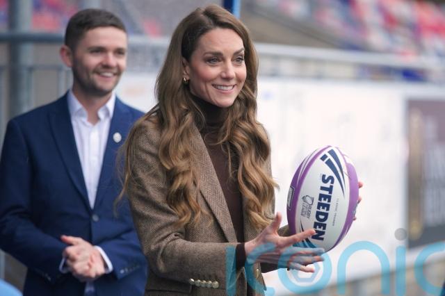 Kate visited Wakefield Trinity’s ground during a day spent in northern England to meet schoolgirls being put through their rugby paces, pensioners taking part in a quiz and teenagers at risk of being excluded from school.