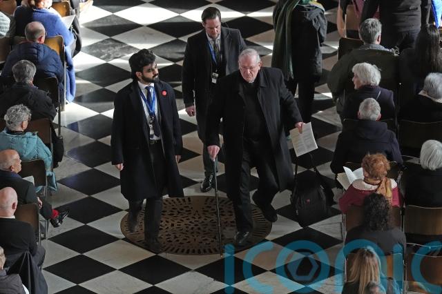 A heckler, who appeared to be dressed in religious clothing, briefly interrupted proceedings and was escorted from the cathedral – although it was not immediately clear what they said.