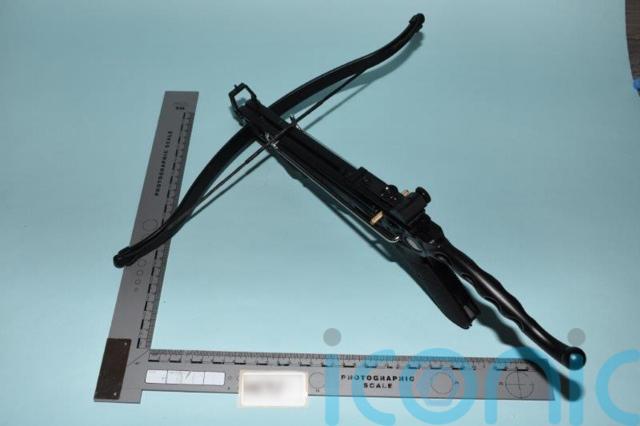 The prosecutor said the crossbow found in his home was bought online by the defendant for £35.95, along with a pack of 10 crossbow bolts.