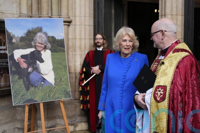 Camilla, who was welcomed at the cathedral by the Very Rev Dr Mark Oakley, Dean of Southwark, viewed a picture of Dame Jilly which was on display outside.