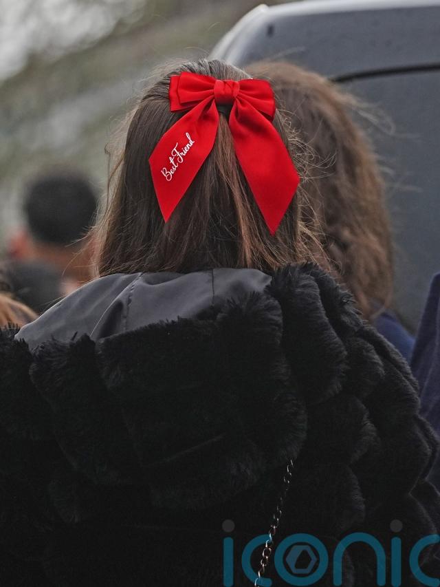 A number of mourners wore red and some of her friends and family wore red bows in their hair.