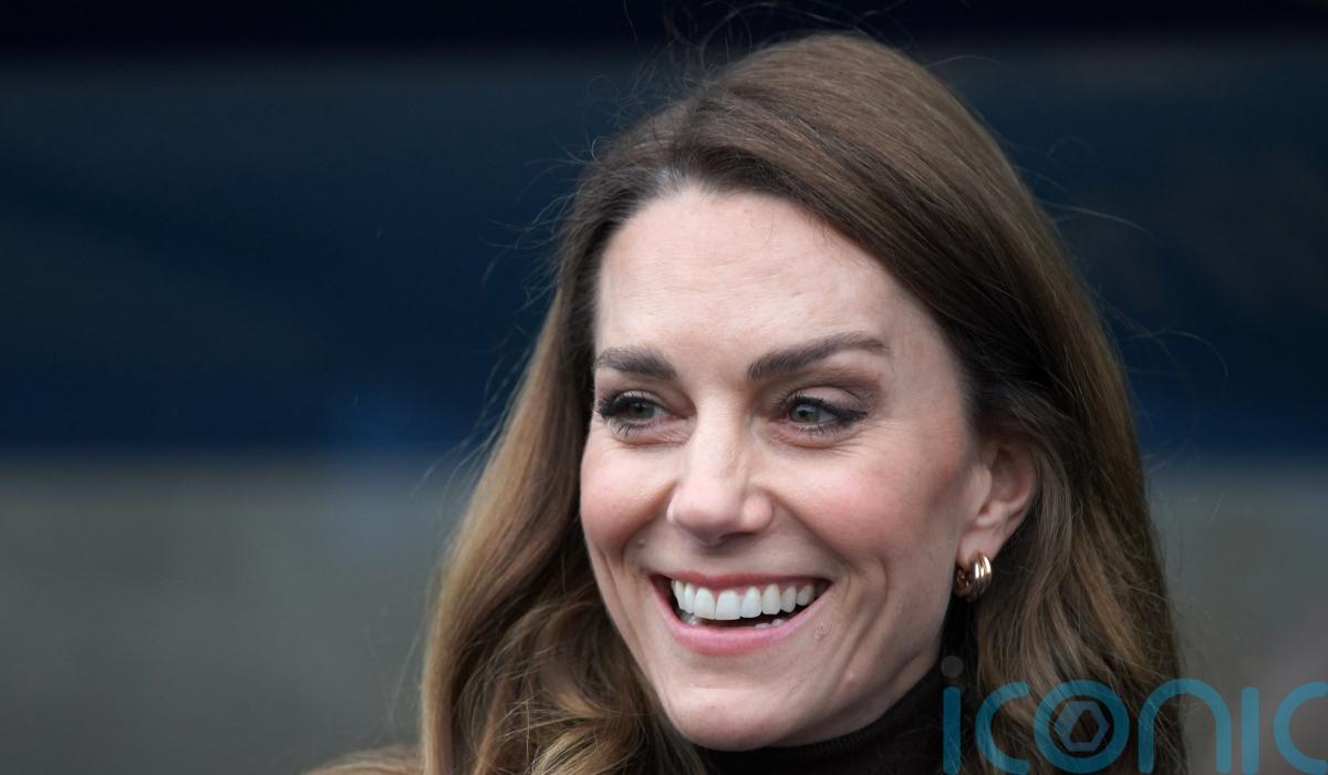 Wrapped up warm against the January cold, the video shows Kate wearing a camel-coloured coat and trousers with a roll-neck jumper and an orange scarf.