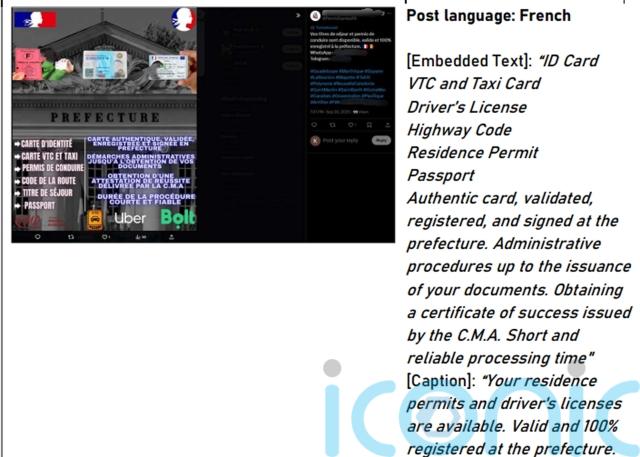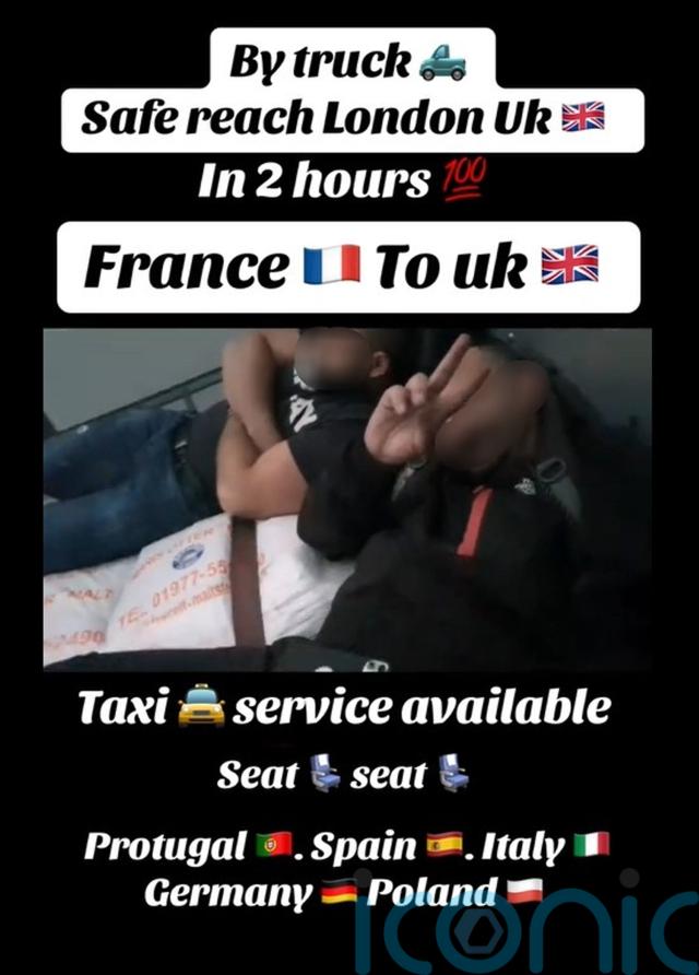 One Stories-style post thought to be in scope and seen by PA advertised “by truck – safe reach London UK” in two hours from France.