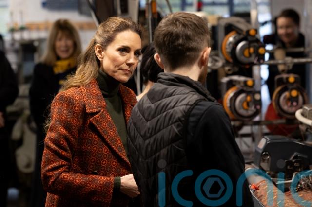 Before departing, Kate greeted well-wishers who had gathered outside the factory to catch a glimpse of the royal visitor.