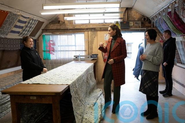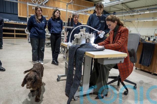 Kate spent the day learning about premium fabrics and fashion produced in West Wales and visited the family-owned jeans manufacturer Hiut Denim, whose creations have been worn by the Duchess of Sussex.